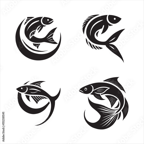 Four Silhouettes of Fish vector eps illustrations on a white background