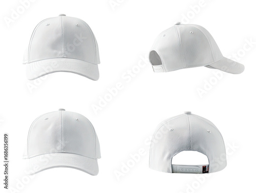 Four views of a plain white baseball cap (3)