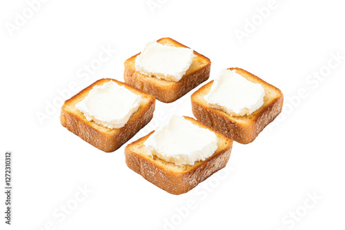 Four white bread slices with butter on top, isolated