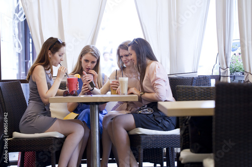 Four young girls have a rest in a summer cafe