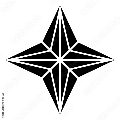 Four-Pointed Star or Compass Icon Vector Illustration for Navigation, Guidance, or Points of Interest
