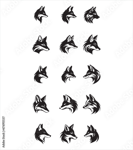 fox heads group visual, fox package, wild nature animals, cutting file, editable
