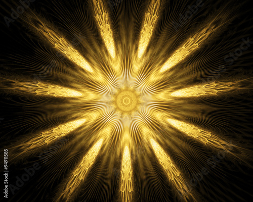Fractal sun. Fractal art background for creative design. Decoration for wallpaper desktop, poster, cover booklet. Abstract texture. Psychedelic. Print for clothes, t-shirt.