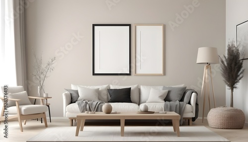Frame mockup in home interior with decoration, living room in beige warm color