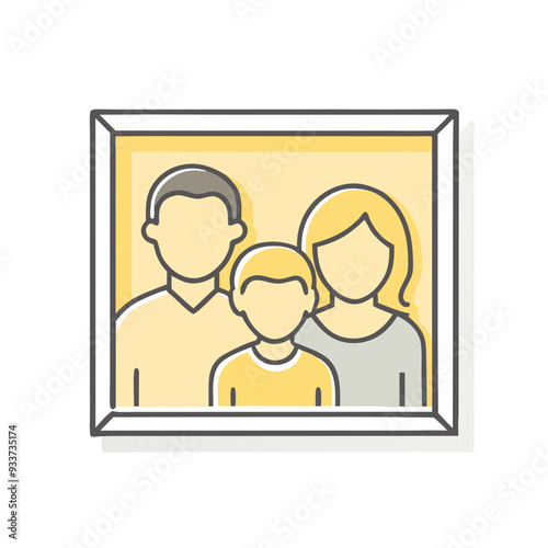 Framed Family Portrait Icon, Memory and Keepsake, Yellow Background