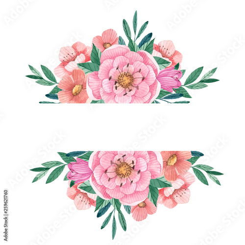 Frames with cute watercolor flowers and leaves