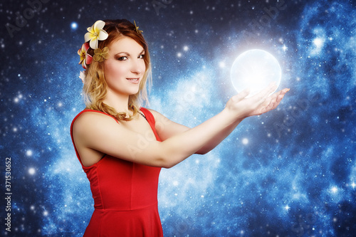Frau hält Kugel