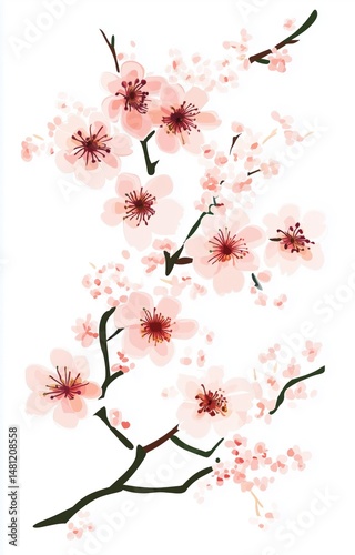 Free hand drawn cherry blossom white background