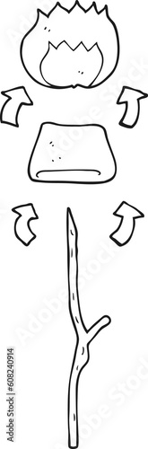 freehand drawn black and white cartoon toasted marshmallow