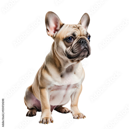 French Bulldog Puppy Portrait: Adorable fawn-colored French Bulldog puppy sits attentively, showcasing its characteristic bat ears and charming expression.