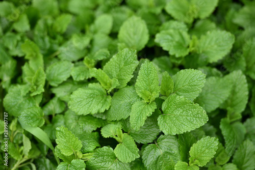 Fresh and bright mint leaves, a whole bush, top view of a mint bush.