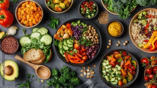 Fresh and Colorful Plant-Based Feast: Vegan Dishes on a Modern Dining Table