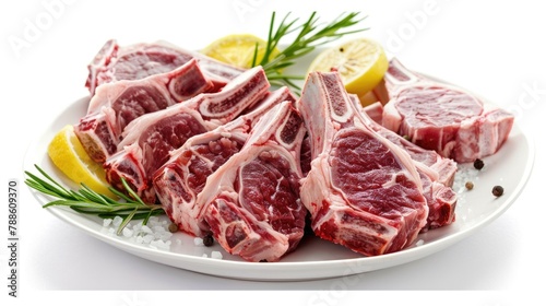 Fresh and Delicious Raw Lamb Cutlets Ready for Cooking - Isolated on White Background