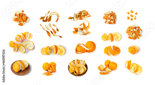 Fresh and Dry Orange Peel Set Isolated on White Background