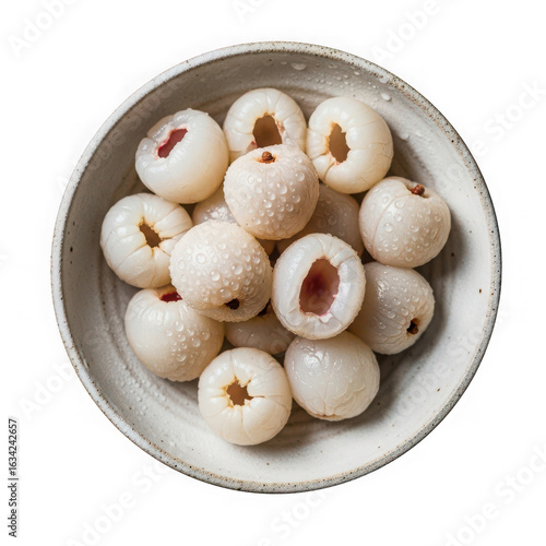 Fresh and juicy lychees in a ceramic bowl, a delicious tropical fruit, isolated on transparent background