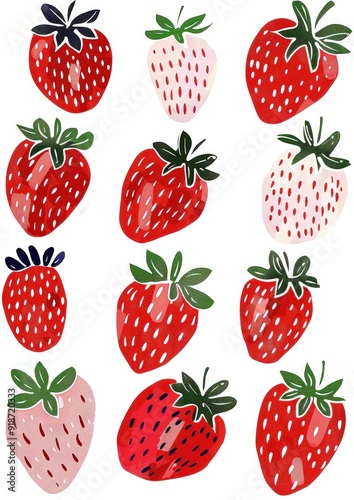 Fresh and Juicy Strawberries with Vibrant Red and Green Leaves on White Background for Health and Food Concepts