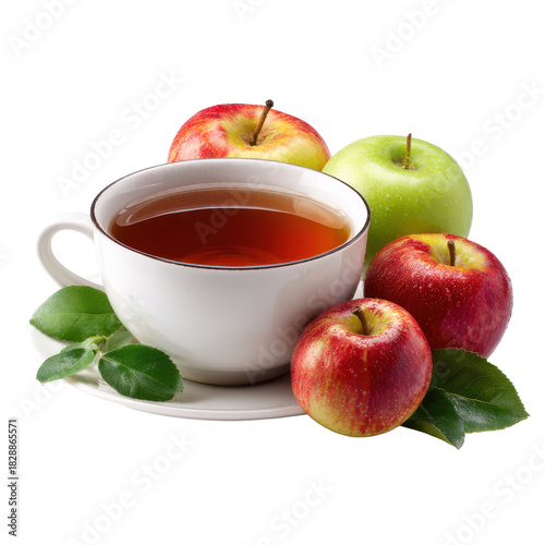 Fresh apples and a steaming cup of tea arranged on a table inviting relaxation and enjoyment of simple pleasures in a cozy setting