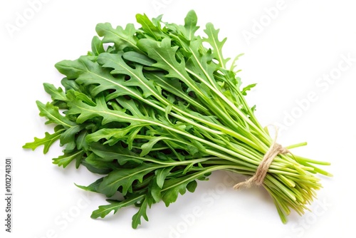 Fresh arugula herb on white background