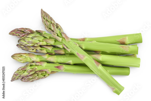 fresh asparagus isolated on white background. Top view. Flat lay.