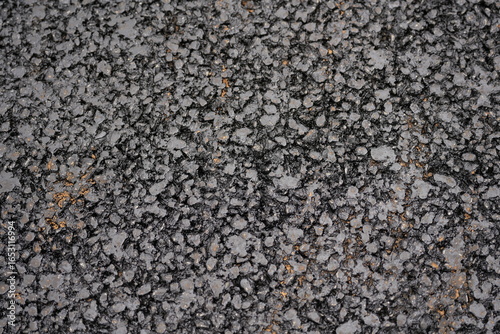 Fresh asphalt road surface texture with visible stones and bitumen, construction and infrastructure background