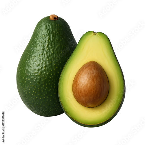 Fresh Avocado Halves with a Smooth Seed on a White Background