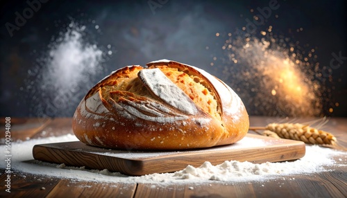 Fresh baked artisan bread on wooden board