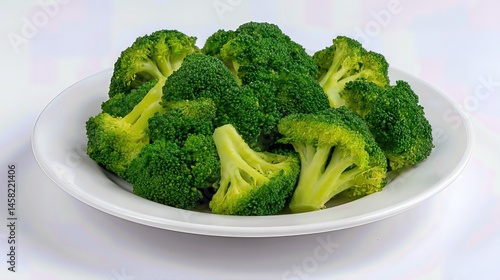 Fresh broccoli florets arranged neatly on a plate, highlighting fiber-rich, vitamin-packed vegetable goodness.