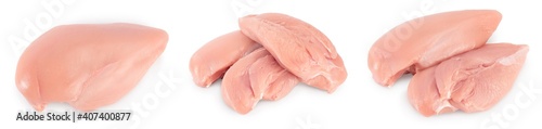 Fresh chicken fillet isolated on white background with full depth of field. Set or collection