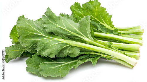 Fresh Chinese Mustard Greens (Brassica juncea) vegetable, isolated on white background.