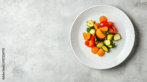 Fresh Colorful Vegetable Medley on White Plate with Neutral Background