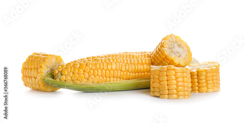 Fresh corn cobs on white background