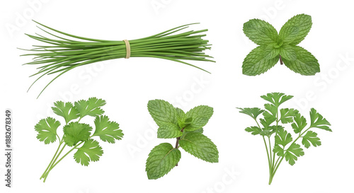 Fresh culinary herbs assorted green leaves isolated transparent background
