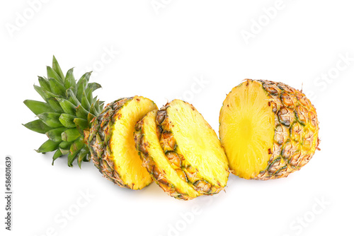 Fresh cut pineapple on white background