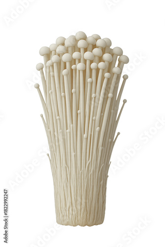 Fresh Enoki Mushrooms Cluster on a White Background