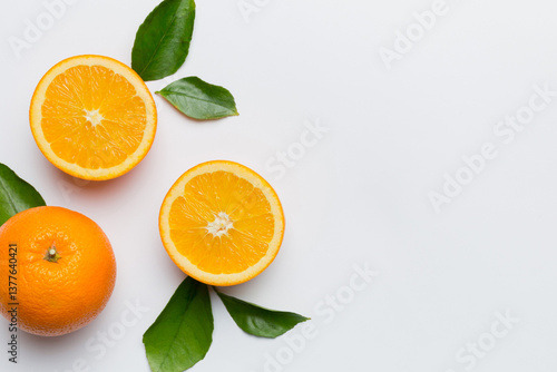 fresh Fruit orange slices on colored background. Top view. Copy Space. creative summer concept. Half of citrus in minimal flat lay with copy space
