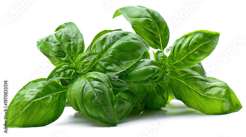 Fresh green basil leaves grown in a herb garden isolated against a transparent background