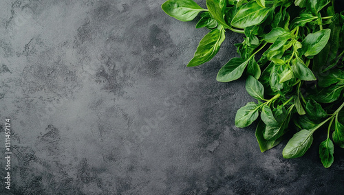 Fresh green basil leaves on a dark textured background. Perfect for food blogs, recipes, and culinary websites.