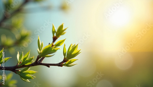 Fresh green leaves against a bright sunny background