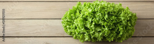 Fresh green lettuce on wooden surface, perfect for salads and healthy meals, showcasing vibrant color and texture