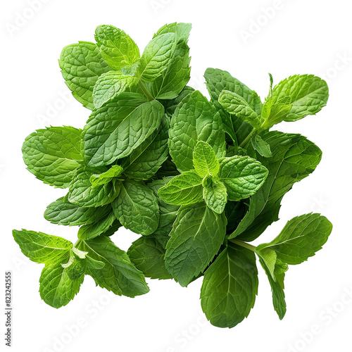 Fresh green mint leaves isolated on a transparent background, ideal for culinary concepts and holiday recipes like Christmas and refreshing summer drinks
