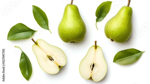 Fresh Green Pears Isolated on White Background