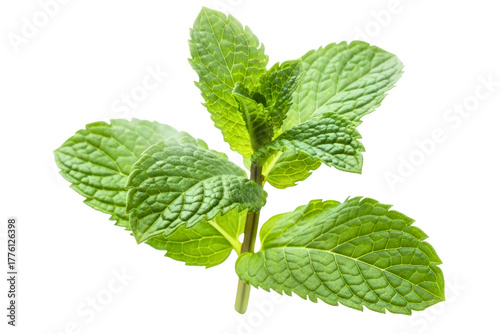 Fresh green sprig of mint herb leaves used for cooking on a transparent background