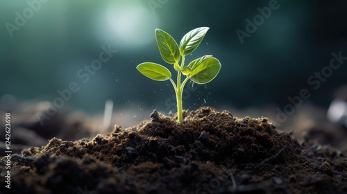 Fresh Green Sprout Growing in Dark Soil Under Natural Light, Representing Hope and New Beginnings for Our Planet's Future