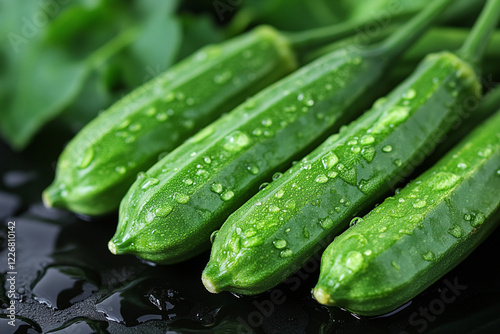 Fresh Green Zucchini Covered in Dew Drops