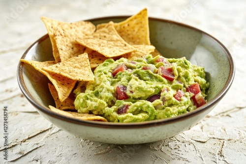 Fresh guacamole served with crispy tortilla chips, perfect for snacking or appetizers