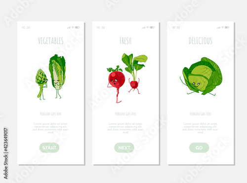 Fresh healthy food store mobile app pages set