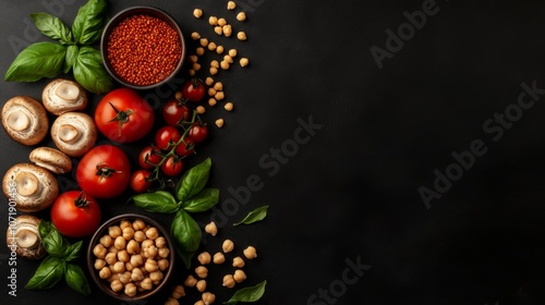 Fresh Italian Pasta Ingredients on Black Stone Slate Background with Copy Space for Text, Food Banner Design