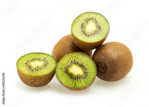 Fresh Kiwi Fruits - Whole and Sliced on White Background