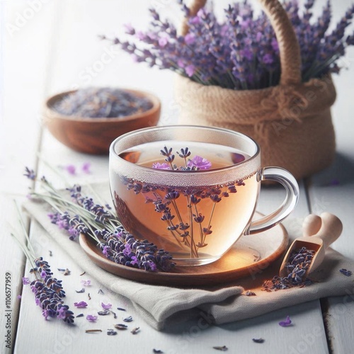 Fresh Lavender Tea with Blooming Lavender Blossoms