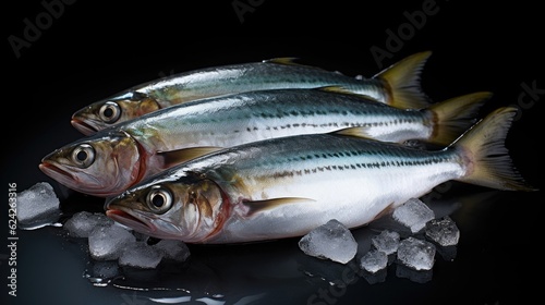 Fresh mackerel fish on ice. Mackerel fish. Generative Ai